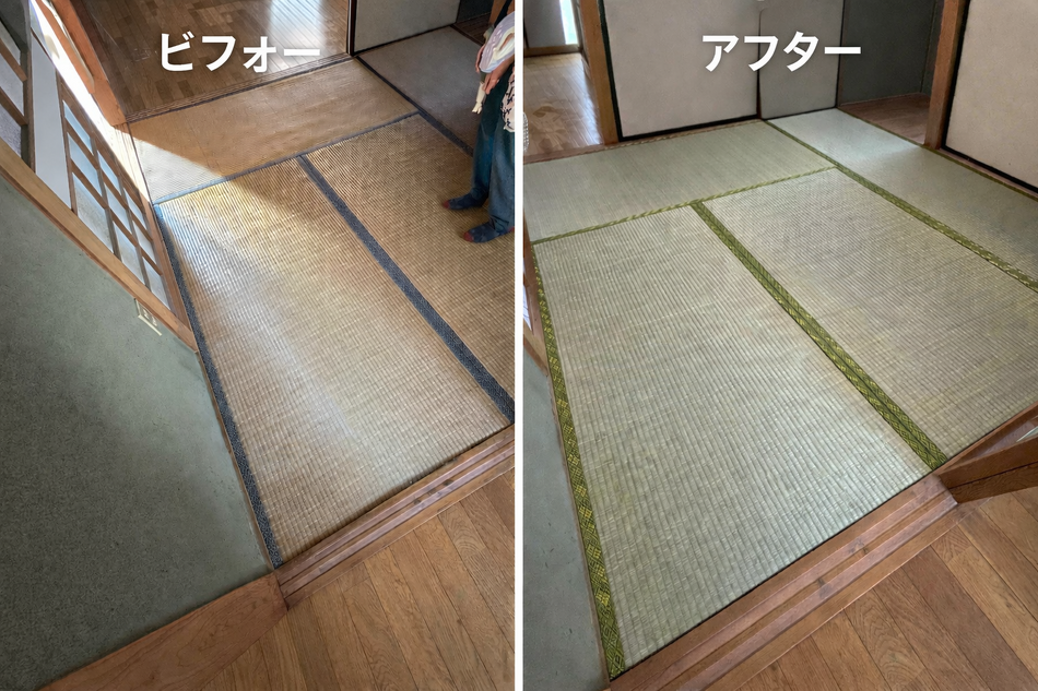 施工前は畳表が日焼けし、全体的にくすんだ印象でした。